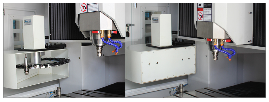 自動(dòng)換刀系統(tǒng):本機(jī)標(biāo)配自動(dòng)換刀系統(tǒng),該系統(tǒng)具備高速自動(dòng)換刀功能,換刀速度快且刀庫容量大,能夠有效提升加工效率,節(jié)約人力成本。